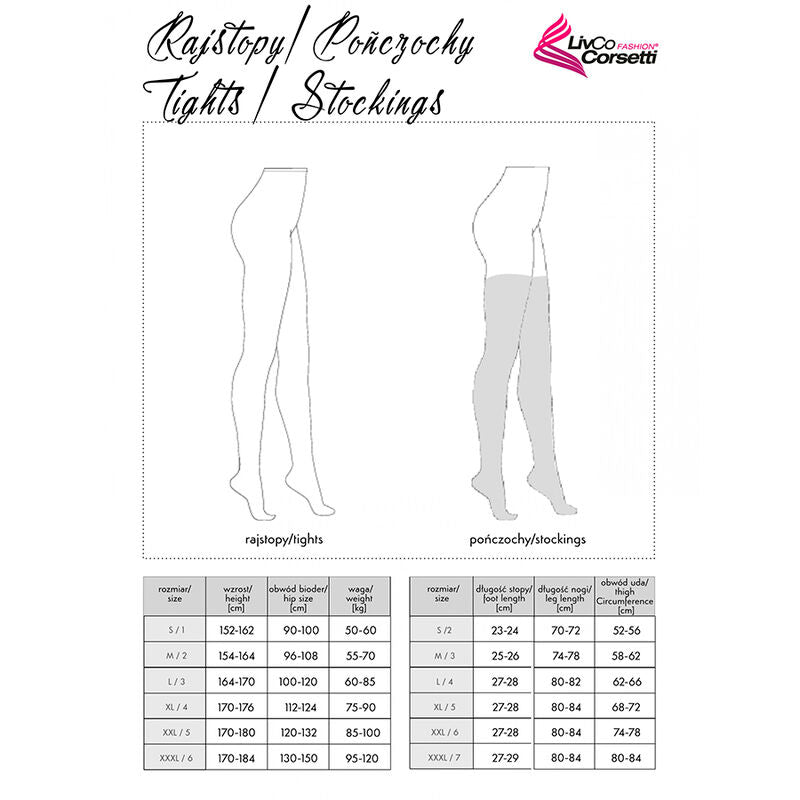 The unique stockings by LivCo Corsetti were created for liberated, self-confident women who are not afraid of their sex appeal. Stockings are an element of women's wardrobe that stole the hearts of many women and others. They beautifully emphasize the beauty of women's legs, and at the same time they are sexy and ignite the senses. The model is a combination of a lace belt and stockings that perfectly match other elements of erotic lingerie. Underwear for special occasions, as well as every day. Lace on the thigh will certainly attract attention to the legs. These are one-of-a-kind stockings that reveal a sensual surprise in their own time. An underwear model created for real temptresses who want to stand out. The stockings are made of high-quality, durable material, so they will last for a long time. Available in sizes S-L